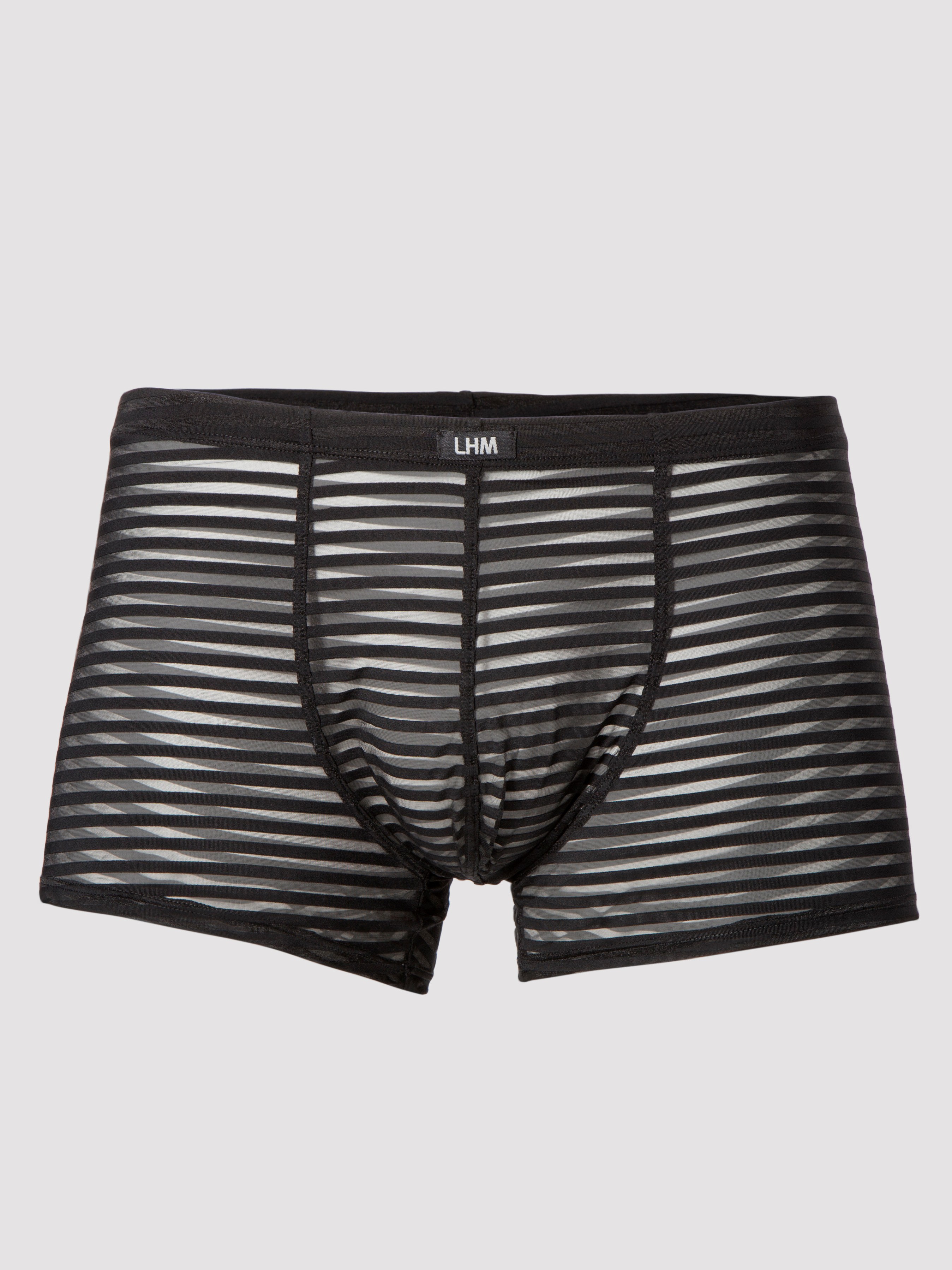 - Sexy semi-sheer striped boxer shorts for a sensual reveal