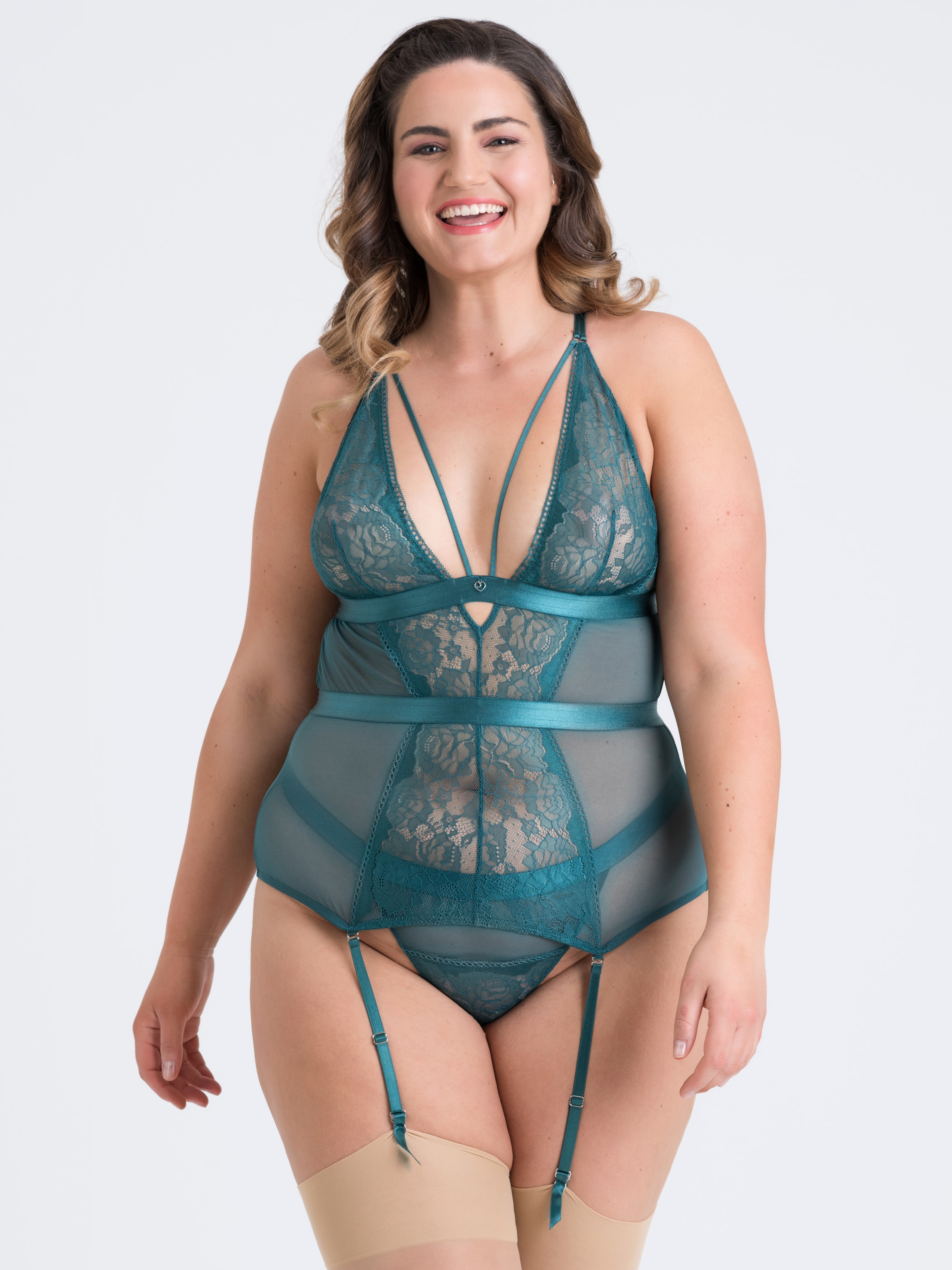 Lovehoney Plus Size Moonflower Emerald Green Lace Strappy Basque Set