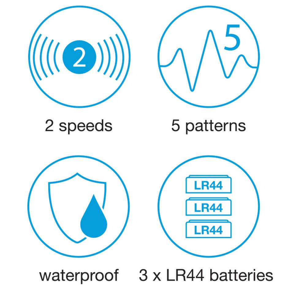 - 2 speeds and 5 patterns of vibration for added excitement