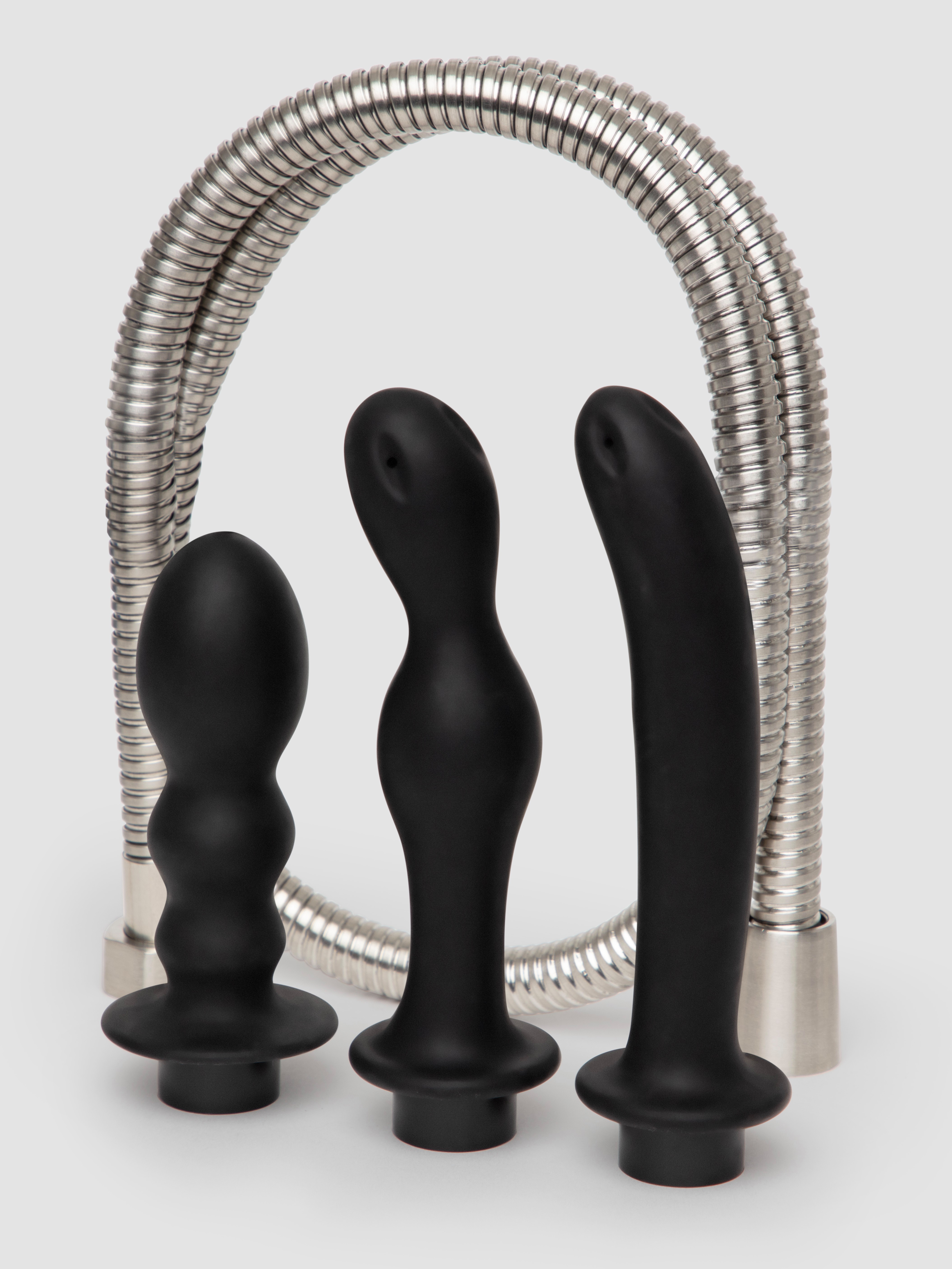 Ready, steady, splash! Treat yourself to an indulgent shower session with this tantalising trio. Featuring three soft and shapely anal douches, replacement washers and shower hose, you can go forth and fill yourself up on booty love.